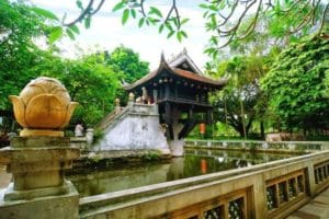 ONE PILLAR PAGODA The pagoda supported by one single pillar in the center of an elegantly square shaped lotus pond.